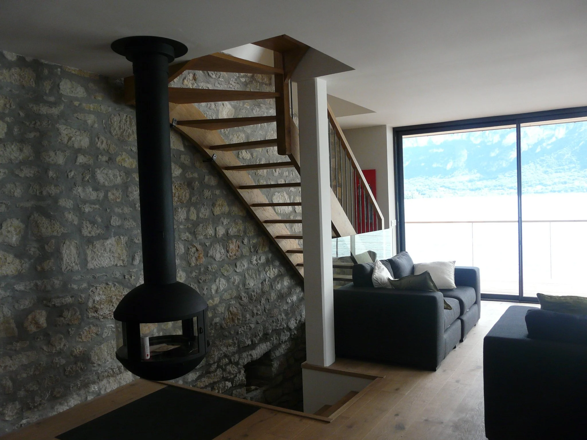 Projet : Rénovation de deux maisons au bord du lac du Bourget. Conservation et rénovation de la maison d’habitation, création d’une maison pour les invités dans l’atelier d’artistes attenant.
